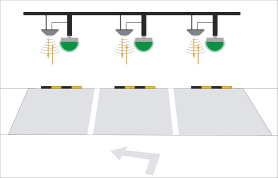 当车辆停在停车位时,米兰·(milan)的停车位车辆检测灯光控制器发出的超声波探测到有车辆,这时指示灯转变成红灯。